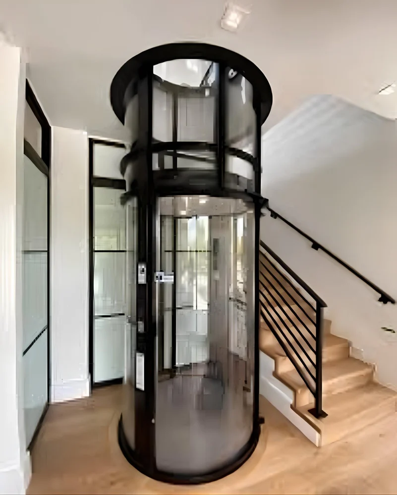 Unlike standard lifts, the circular glass home elevator becomes a focal point of design—capturing attention while optimizing vertical mobility.